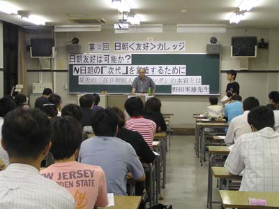 講座は後期(10月6,13,20,27)にも、立命館大学の徐勝先生やジャーナリストの伊藤孝司先生を招き行なわれる他、今後の「日朝友好関東学生の会」の活動として、日朝友好納涼会(8/10)や映画「パッチギ」上映会と枝川朝鮮学校問題を考える集い(井筒監督に交渉中)、年末には昨年に続き開催される、「日本と朝鮮半島の<次代>を創造する若者フォーラム」の運営も予定しています。