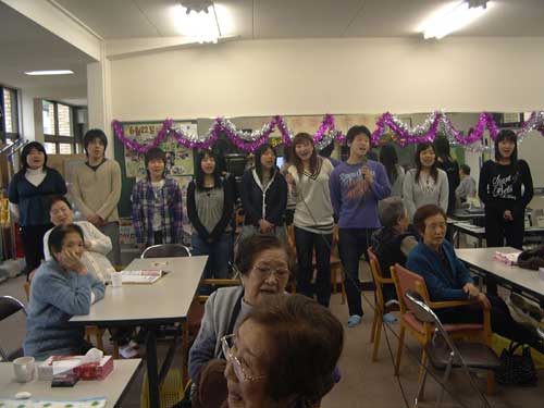 3月10日、東京第4初中級学校内にある「デイサービス朝日」見学会を行いました。ハラボジハルモニたちと一緒に体操や歌の練習をした後、楽しくお昼ごはんを食べました。ハラボジハルモニたちはとても優しく学生たちに接してくださり、朝鮮将棋や花札を教えてくださいました。午後にはカラオケ大会が催され学生たちも歌を披露しました。