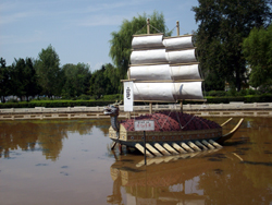 秀吉の夢はまさに実現寸前でありましたが、その野望を打ち砕き、戦局を転換させる重要な役割を果たしたのが李舜臣将軍の率いる水軍が駆使した亀甲船(コブッソン)だったのです。